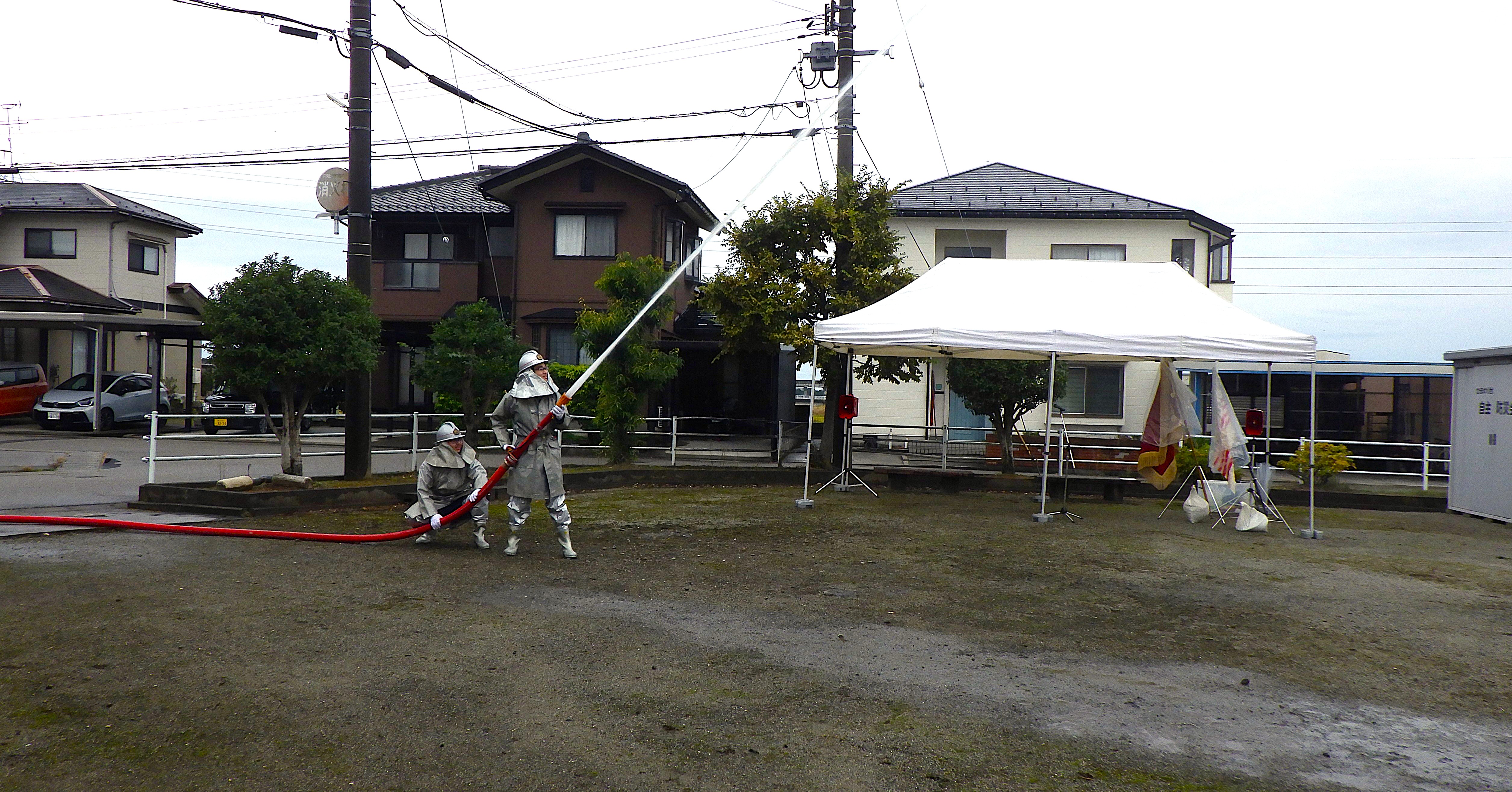 上市消防署では、令和7年秋季全国火災予防運動に伴い、11月9日(日)上市町放士ケ瀬新地内ひまわり台公民館及び周辺において上市町秋季消防訓練を実施しました。